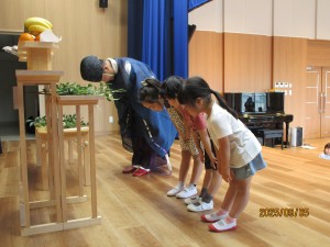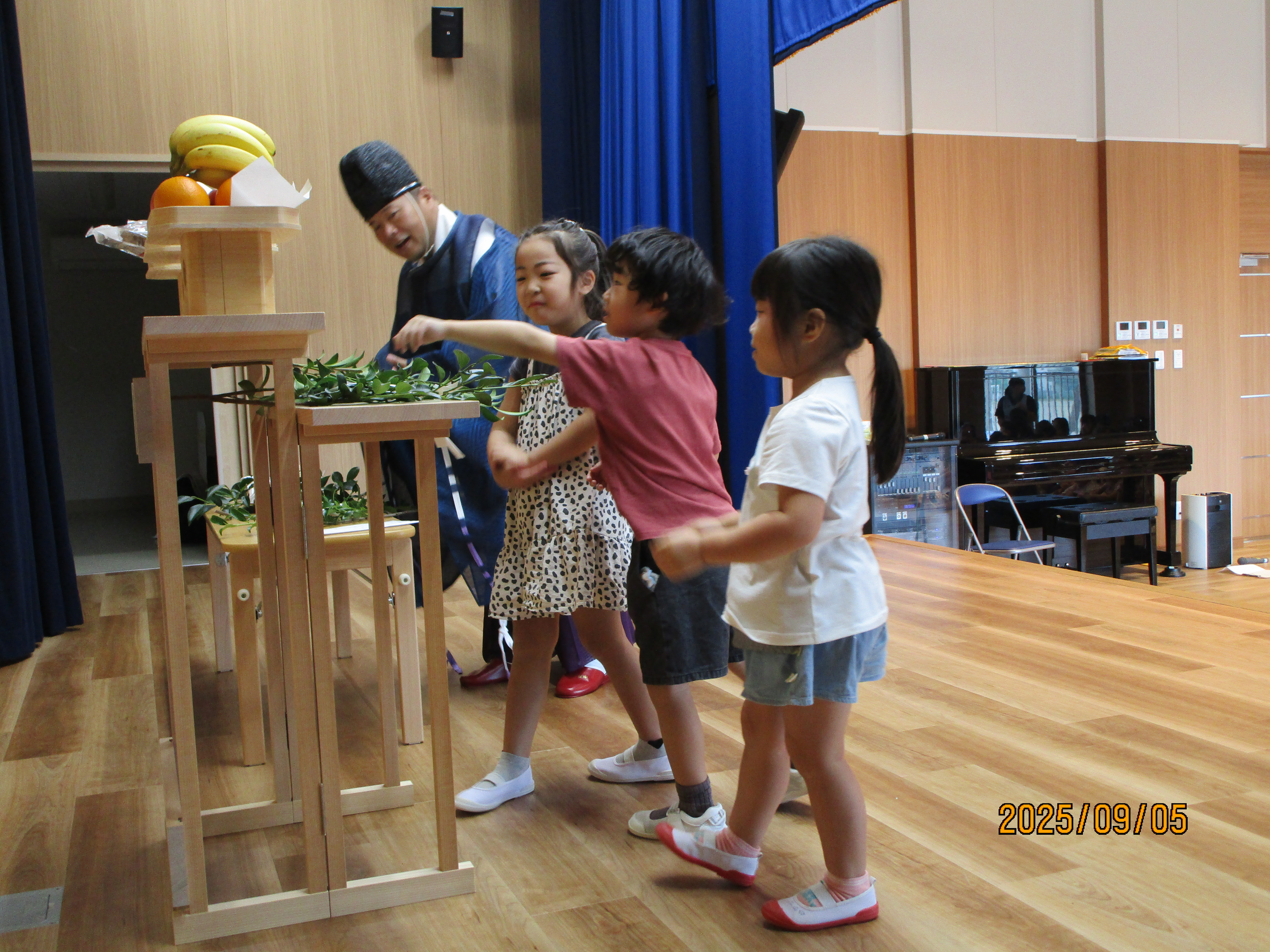 年長児さんは玉串を奉納しました。落ち着いてできたね!
